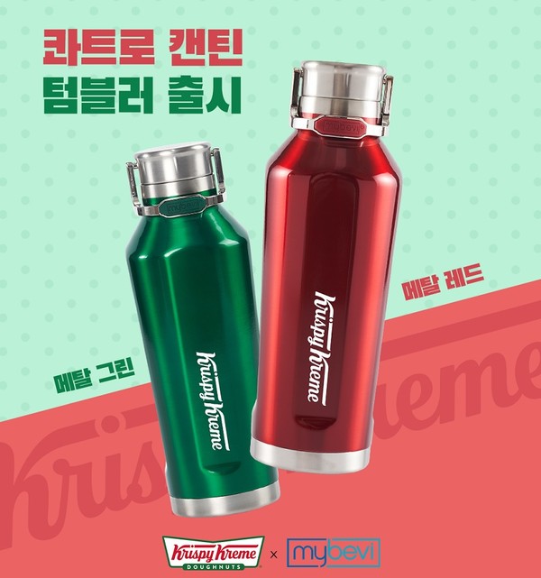 미국 드링크웨어 브랜드 마이베비(MyBevi)와 협업을 통해 크리스피크림도넛 고유의 색을 활용한 '메탈 그린'과 '메탈 레드' 두 가지 색상으로 선보였다. 텀블러 전면에 각인한 로고를 통해 시그니처 의미를 더했다.