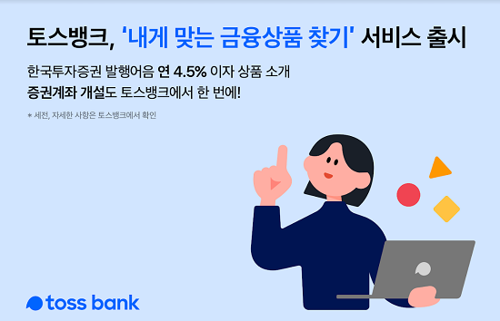 토스뱅크 관계자는 “내게 맞는 금융상품 찾기 서비스를 통해 현재 시장에서 최고 수준의 혜택을 제공하는 투자상품을 한 눈에 만나볼 수 있고 클릭 몇 번만으로 증권계좌 개설까지 완료할 수 있게 됐다"며 “앞으로 고객들에게 더 많은 혜택을 드릴 수 있도록 상품 라인업을 강화하고 더 나은 서비스를 위해 계속 노력할 것"이라고 말했다.