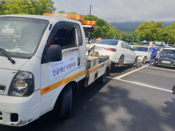 KB손해보험은 지난 10일 긴급재난 지원본부를 설치해 침수차량을 견인하여 안전한 곳으로 이동, 관리할 수 있도록 했다.