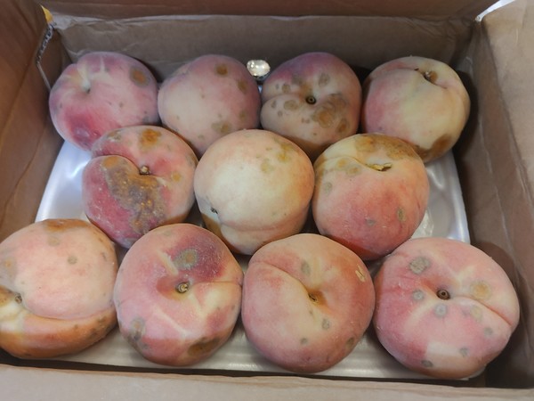 복숭아는 예상과 달리 주말에 도착했고 당시 부재중이던 조 씨는 월요일에야 과일 상태를 확인할 수 있었다. 복숭아는 11개 모두 정도만 다를 뿐 무르고 상한 듯 반점이 곳곳에 피어 먹을 수 없는 상태였다.