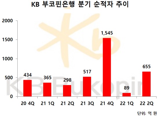 KB부코핀은행의 올해 상반기 당기순손실 규모는 전년 대비 12.2% 늘어난 744억 원이었다. 분기 순손실 규모 역시 지난 1분기 89억 원에서 2분기 655억 원을 기록하며 큰 폭으로 증가했다.
