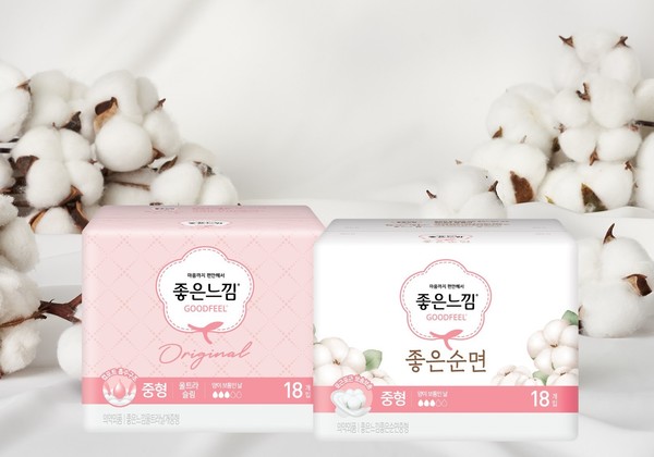 ‘좋은느낌 오리지널’과 ‘좋은느낌 좋은순면’으로 출시된 이번 신제품은 생리혈에 최적화된 흡수구조와 인체공학적 디자인 등을 적용한 것이 특징이다.