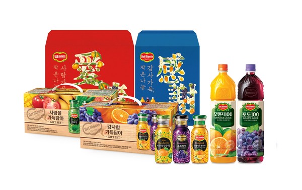 델몬트 소병 선물세트는 프리미엄 과일 주스를 간편하게 마실 수 있는 180mL 소병 제품을 12개씩 담았다. 오렌지·포도 세트, 망고·알로에·토마토 세트, 알로에·감귤·포도·망고 세트 등 총 3종으로 구성됐다.