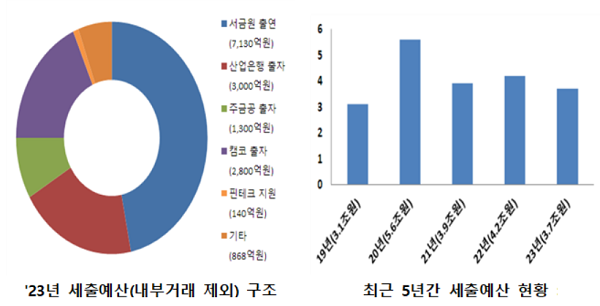 금융위는 "2023년도 예산안을 통해 생산적 금융 강화와 금융취약계층 지원을 뒷받침할 수 있도록 향후 국회심의 과정에서 예산의 필요성을 충실히 설명해 나갈 예정"이라고 밝혔다.