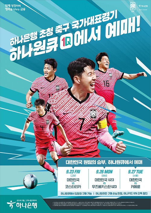이벤트 응모 고객 중 추첨을 통해 ▲축구 국가대표팀 응원 티셔츠(100명) ▲29세 이하 고객 대상 A매치 경기티켓 제공(2장 씩 총 20명) ▲하나원큐 캐논슈터 선발대회 등의 이벤트가 진행될 예정이다.