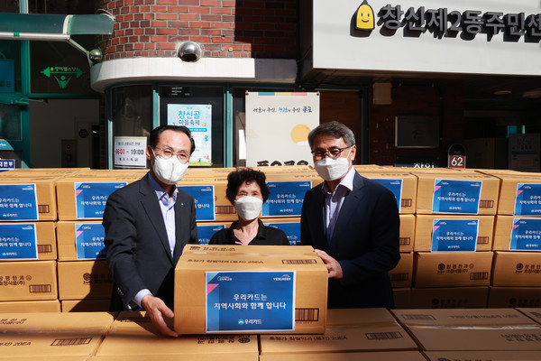 이 행사는 이달 7일 종로구 창신 제2동 주민센터에서 진행됐다. 우리카드 김정기 사장을 비롯한 임직원 20여 명이 참석했고, 한과 등을 담은 ‘명절선물’과 임직원들이 자필로 작성한‘사랑의 편지’를 지역 어르신들께 전달했다.