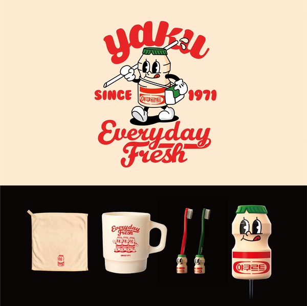 야쿠는 hy 베스트셀러 제품인 '야쿠르트 라이트(이하 야쿠르트)' 브랜드의 정체성을 살려 의인화한 캐릭터다. 고유의 병 모양과 컬러를 사용해 레트로(Retro, 복고) 감성을 살렸다. 장난기 가득한 표정에는 1971년 야쿠르트를 처음 접한 어린 시절이 떠오른다는 게 hy 측 설명이다.