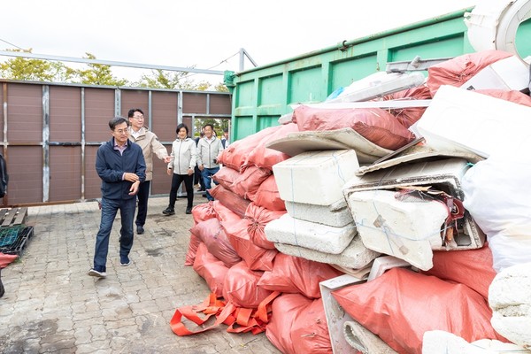 김 지사는 23일 화성시 전곡항 일대를 방문해 해양쓰레기 수거·집하 현장을 보고, 해양쓰레기 집하장에 수거된 쓰레기 현황을 점검했다.