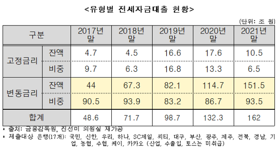 특히 전세자금대출 중에서 변동금리 대출 비중이 지속적으로 늘고 있다는 점에서 금리인상기에 이자 부담이 가중될 우려가 높아지고 있다.