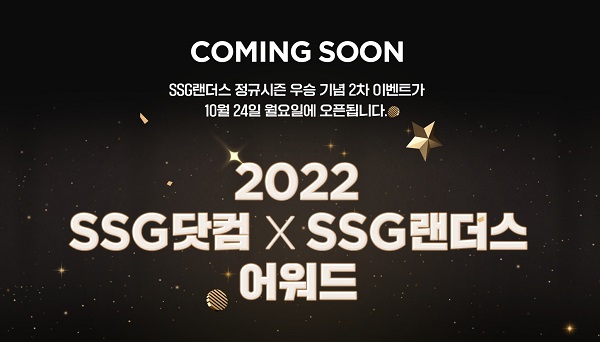 오는 24일부터 30일까지는 2차 이벤트를 진행할 예정이다. ‘2022 SSG닷컴XSSG 랜더스 어워드 이벤트’를 주제로 팬들이 직접 뽑은 SSG 랜더스 MVP 투표를 진행한다. 투표에 참여한 고객 중 추첨을 통해 24K 골드바, 갤럭시 워치 5, SSG머니 5만원 등 다양한 경품을 총 1221명에게 제공할 예정이다.