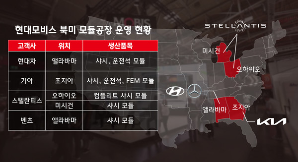 현대모비스는 이번 샤시 모듈 공급을 위해 벤츠의 미국 공장 인근에 앨라바마 맥칼라에 공장을 조성하고 올 3분기부터 양산에 들어갔다고 18일 밝혔다.