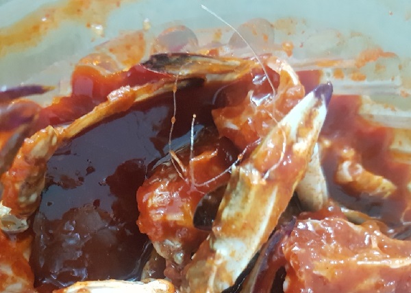 세종시 나성동에 사는 곽 모(여)씨는 지난 8월 23일 유명 대형마트 반찬 코너에서 양념게장을 구입했다. 당일 저녁 곽 씨는 자녀들과 함께 게장을 먹던 중 가느다란 흰색 선의 이물질을 발견했다.