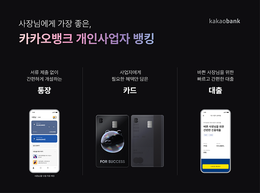 카카오뱅크는 개인 고객 시장에서 선보인 모바일 뱅킹 서비스를 개인 사업자 뱅킹에 이식해 동일하게 사용자 편리 중심의 서비스를 선보인다는 계획이다. ▲통장 ▲체크카드 ▲신용카드 ▲대출 이상 4개 상품을 선보였다.