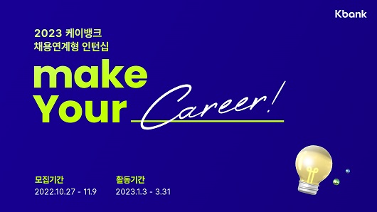 모집 대상은 기졸업자 및 2023년 2월 졸업예정자이며 석사 및 2년 미만 경력자도 지원 가능하다. 합격자는 내년 1월3일부터 3개월간 풀타임 인턴십 과정을 완료하고 별도 정규전환 심사를 통과하면 내년 4월 케이뱅크 정규직으로 최종 입사하게 된다.