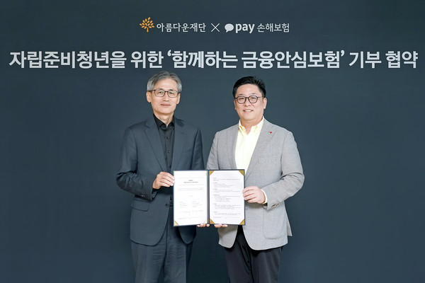 카카오페이손해보험은 아름다운재단과 지난달 17일 ‘자립준비청년을 위한 ‘함께하는 금융안심보험’ 기부 협약식’을 진행하고 이달부터 자립준비청년을 위한 보험 기부를 시작했다고 설명했다.
