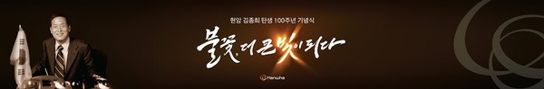 현암탄생100주년기념사업위원회(위원장 금춘수)는 10일 오후 서울 63컨벤션센터에서 현암 탄생 100주년 기념식을 개최했다. 한화는 ‘불꽃, 더 큰 빛이 되다’라는 슬로건 아래 창업자의 업적과 철학을 기렸다.