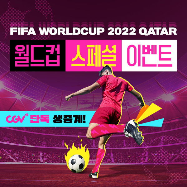 대한민국 선수단의 유니폼 색깔인 빨간색이 포함된 사진 또는 승리를 응원하는 마음을 담은 V 인증샷을 필수 해시태그(#CGV카타르월드컵, #미리응원전)와 함께 개인 인스타그램에 게시하면 1000명에게 영화 관람권을 선물할 예정이다.
