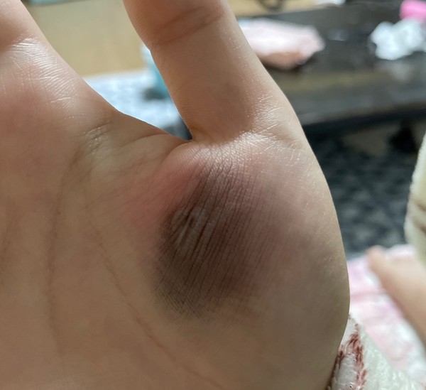 자녀의 오른손 바닥은 2도 화상을 입었고 사고 당시 전기 충격을 받아 떨림 증세도 이어졌다.