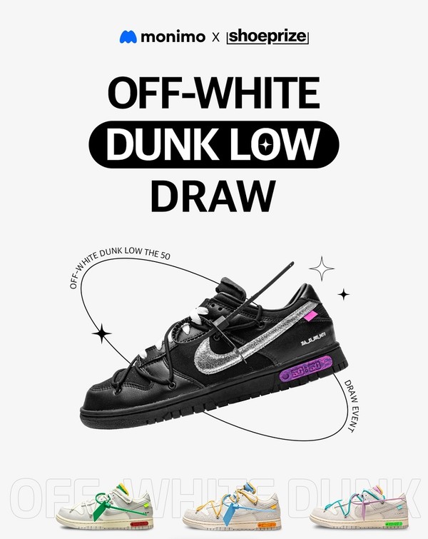 '모니모' 혜택 탭의 이벤트 페이지에서 응모코드를 받아 '슈프라이즈' 앱에 입력하면 자동으로 응모된다. 이벤트는 12월 5일까지 진행되며 추첨을 통해 선정된 50명에게 나이키 한정판 신발인 '오프화이트 덩크 로우'를 제공한다.