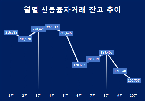 기준금리가 꾸준히 오르면서 신용거래융자 금리 역시 두자릿수를 돌파했는데도 불구하고 이용자가 크게 줄어들었기 때문이다.