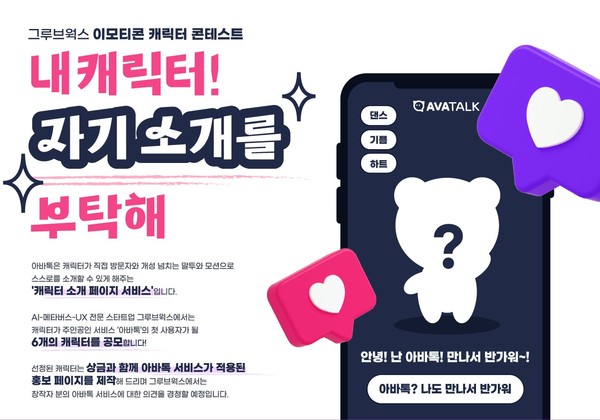 공모전은 정식 론칭을 앞둔 대화형 인터랙티브 2D·3D 캐릭터 솔루션 '아바톡(AVATALK)' 서비스의 첫 사용자가 될 캐릭터 6개를 모집하는 내용이다.