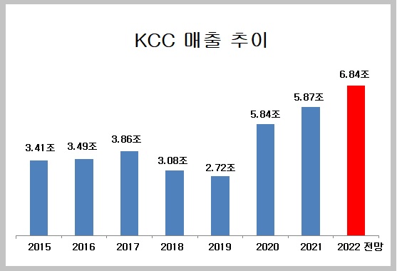 KCC는 연간 매출이 2014년 이후 3조4000억 원대에서 정체됐다. 2019년에는 매출이 3조 원 미만을 기록하기도 했다.