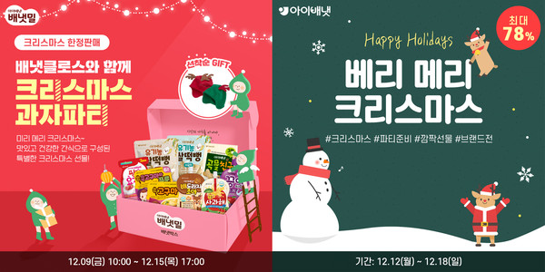 배냇밀몰에서는 9일 오전 10시부터 15일 오후 5시까지 '배냇클로스와 함께 크리스마스 과자파티' 행사를, 아이배냇몰에서는 12일부터 18일까지 '베리 메리 크리스마스' 행사를 각각 진행한다.