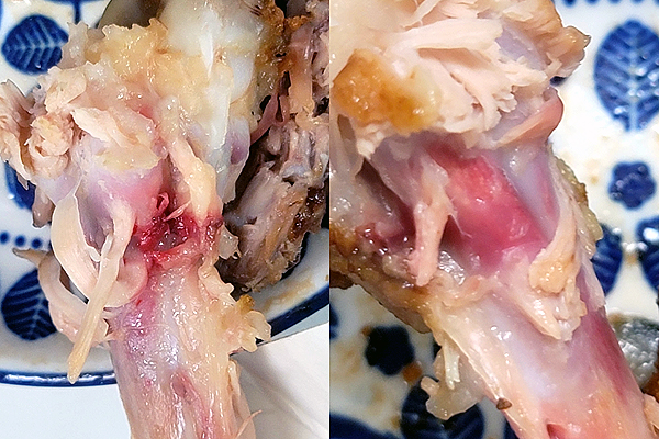 세종시에 사는 이 모(남)씨는 지난 24일 배달앱에서 유명 프랜차이즈 치킨을 주문해 먹던 중 핏자국이 붉게 물든 것 같은 뼈를 발견하고 깜짝 놀랐다. 뼈 주변으로 갈수록 선명한 붉은 빛을 띠고 있어 마치 덜 익어 피가 비치는 것처럼 보였다.