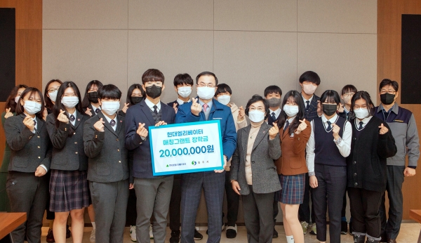 현대엘리베이터는 2009년부터 ‘기업의 사회적 책임을 다하고 지역 인재를 육성하자’는 취지로 사회공헌 기금을 운용해왔다. 재원은 매칭그랜트 방식으로 임직원들이 매월 급여의 1000원 미만을 공제해 적립한 ‘끝전공제 기금’에 회사가 이와 동일한 후원금을 출연해 마련하고 있다. 첫 해 6명으로 시작해 올해까지 267명에게 총 2억6300만 원을 지원했다. 올해는 장학생과 학교 관계자 등을 충주 스마트 캠퍼스로 초청해 견학 및 장학금 수여식을 진행했다.