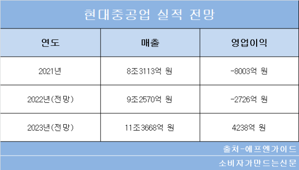 오히려 보수적으로 목표치를 잡았다는 평가도 있다. 지난해 10월, 신한투자증권은 현대중공업의 2023년 매출을 13조7910억 원으로 예측했다.