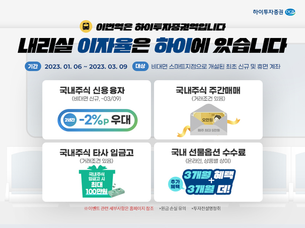 타 증권사에 있는 국내 주식을 1000만 원 이상 하이투자증권 스마트지점으로 이전하거나 현금으로 입금 후 1000만 원 이상 거래할 경우에는 최대 100만 원의 현금을 지급한다.