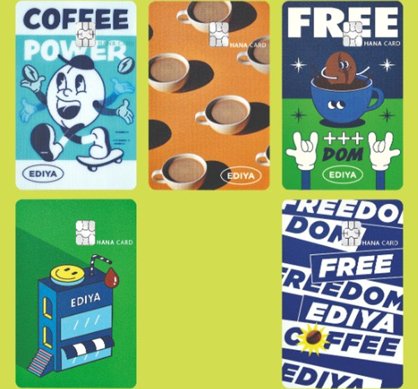 이디야 하나카드 디자인은 MZ세대 고객과 직원들의 다양한 의견을 반영한 총 5가지 플레이트로 제작됐다는 설명이다. 연회비는 국내외겸용(VISA) 1만5000원이다.
