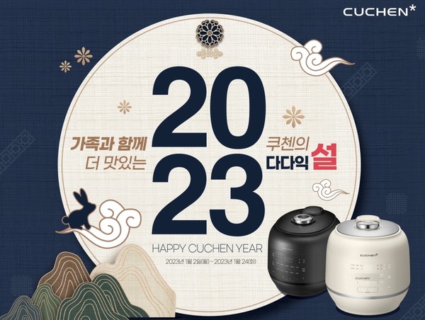 쿠첸 관계자는 “2023년 검은 토끼의 해를 맞이하여 온 가족이 함께 더 맛있고 즐거운 명절을 보내길 바라는 마음으로 ‘다다익설’ 기획전을 진행하게 됐다”며 “이번 설 프로모션만을 비롯해 올 한 해도 소비 트렌드에 맞춰 고객이 더 편리하게 쇼핑할 수 있도록 다양한 온오프라인 프로모션을 진행할 계획”이라고 전했다.
