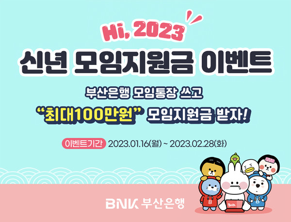 이벤트는 부산은행 모임통장 신규 가입고객이 ▲모임관리서비스 이용(모임원 2인 이상) ▲이벤트 기간 내에 모임통장 입금(최소 1회) 등 조건을 모두 충족하면 ‘모임지원금’을 제공한다.
