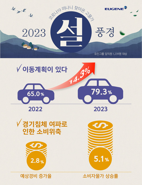 유진그룹 관계자는 “코로나19 이후 실내 마스크 해제가 유력시 되고 거리두기가 없는 첫 설 연휴를 맞아 보다 많은 임직원들이 고향방문을 계획 중인 것으로 보인다”며 “즐겁고 건강한 설 연휴를 즐길 수 있도록 회사 차원에서도 지원을 아끼지 않을 계획”이라고 밝혔다.