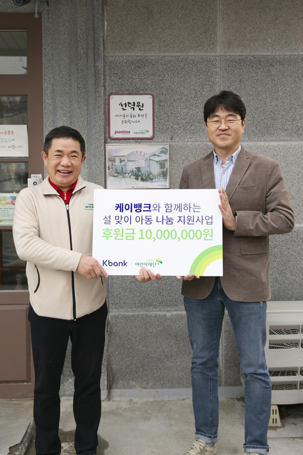 케이뱅크는 지난해 11월 아동 주거비 지원을 위해 후원금 5000만 원을 초록우산어린이재단에 전달한 데 이어 새해에도 아동을 위한 따뜻한 나눔 행보를 이어가고 있다.