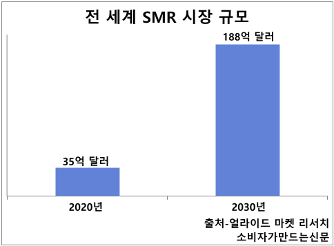 탄소중립을 위한 에너지 생산 방법으로 SMR이 주목받으면서 시장 규모도 커질 것으로 관측된다. 해외 시장조사업체 얼라이드 마켓 리서치(Allied Market Research)는 2020년 35억 달러 규모였던 글로벌 SMR 시장이 연평균 15.8% 성장해 2030년에는 188억 달러에 이를 것으로 전망했다.