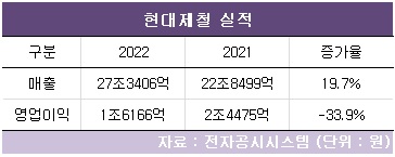 매출은 2021년에 이어 지난해 다시 한 번 사상 최대 기록을 갈아치웠다. 지난해 여름 태풍 ‘힌남노’로 공장 일부가 침수되며 봉형강 및 중기 제품 제조 생산이 중단됐고, 하반기에는 시황악화와 파업이 겹친 가운데서도 매출을 늘렸다.