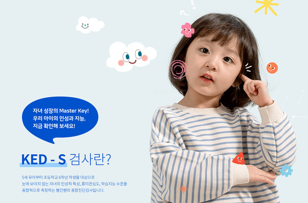 ‘KED-S’는 국가 인성교육진흥법을 번영해 만든 검사 모델이다. (주)한국가이던스, 서울대학교 교육학과가 개발에 참여했다.학습지를 본격적으로 시작하는 5세부터 초등학교 6학년 학생의 인성적 특성, 학습지능수준, 흥미관심도등을 종합적으로 측정, 진단할 수 있도록 설계됐다.