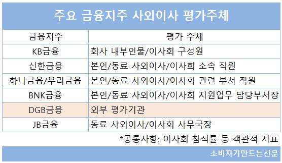국내 8개 은행계 금융지주사 중에서 사외이사 평가를 외부에서 실시하는 곳은 DGB금융지주가 유일하다.