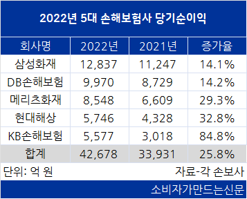 현대해상과 KB손해보험도 각각 32.8%가 늘어난 5746억원과, 84.8% 늘어난 5577억원을 기록했다.