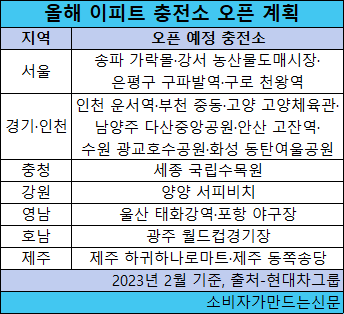 현대차그룹 관계자는 "전기차 이용 고객을 위한 서비스를 향상해 고객 편의를 높이고자 꾸준히 전기차 충전 인프라 확장에 나서고 있다"며 "일반 완속 충전기보다 훨씬 빠른 충전 속도를 제공하는 이피트를 통해 국내 전기차 충전 시장을 선도하고자 한다"고 전했다.