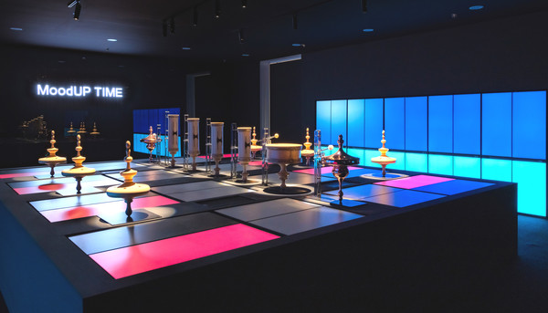 이번 전시의 주제는 ‘무드업 타임(MoodUP TIME)’이다. 고객은 무드업 냉장고의 빛과 음악이 조화롭게 어우러지는 모습을 경험할 수 있다. 부스 중앙의 메인 전시관에서는 18대의 무드업 냉장고가 무드업을 위해 편곡된 음악에 따라 색상과 분위기를 바꾼다.