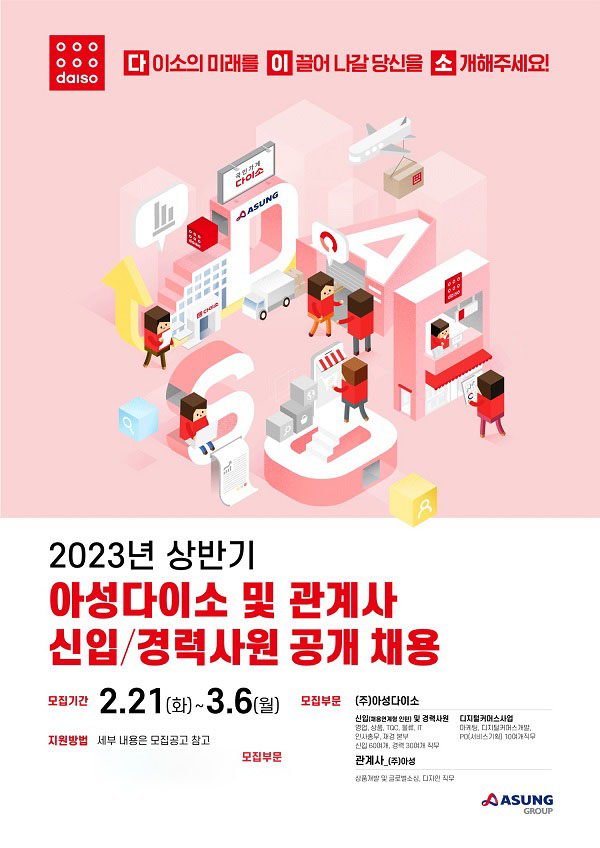 자세한 사항은 ㈜아성다이소 채용 홈페이지에서 확인할 수 있다.