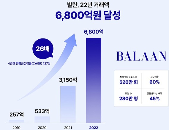 발란 관계자는 "거래액의 성장은 물론 재구매율도 기존 45%에서 60%대로 늘어나는 등 고객과 쌓아온 신뢰가 시장에서 좋은 반응을 이끌어냈고 그것이 성과로 나타난 것으로 보인다"고 말했다.