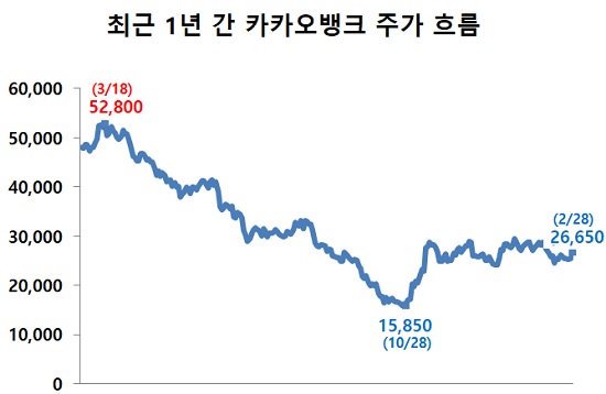 공모가가 다소 높다는 지적에 폭락했던 주가도 지난해 4분기부터 반등하고 있다. 카카오뱅크는 상장 당시 공모주 청약 열풍에 힘입어 높은 기업 가치를 인정 받았지만 이후 증권가를 중심으로 공모가가 다소 높다는 지적이 이어지면서 지난해 주가가 큰 폭으로 떨어졌었다.