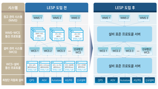LESP는 CJ대한통운이 개발해 2019년 특허 등록을 완료한 기술로 서로 다른 물류 설비와 시스템 사이의 통신을 원활하게 할 수 있도록 하는 표준 가이드다. 이번 공개를 통해 CJ대한통운은 업계 상생을 실현하고 물류 산업 첨단화를 지원한다는 계획이다.