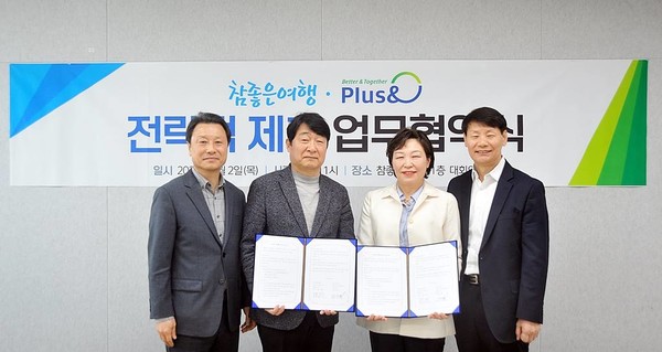 참좋은여행 조현문, 이종혁 대표와 플러스앤 이재형 대표, 김미진 부사장은 지난 2일 오전 참좋은여행 본사에서 전략적 제휴를 위한 업무협약을 체결했다.