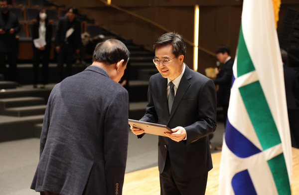 김 지사는 3일 납세자의 날을 맞아 경기도청에서 2023년 유공납세자 인증패 수여식을 열고 지역발전에 기여한 유공납세 법인에 인증패를 수여했다.