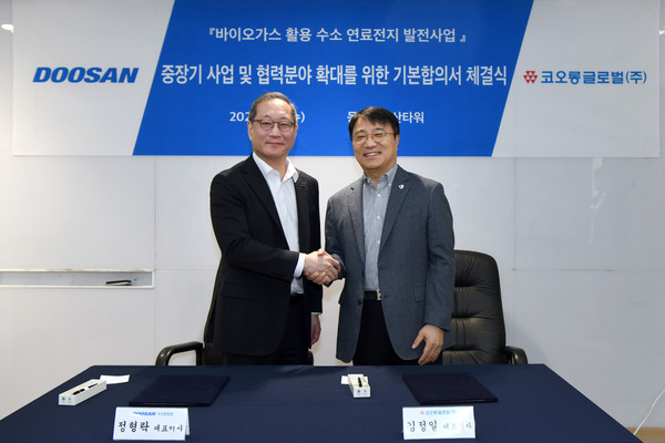 코오롱글로벌은 22일 동대문 두산타워에서 두산퓨얼셀과 ‘중장기 사업 및 협력분야 확대를 위한 기본합의서’를 체결했다.